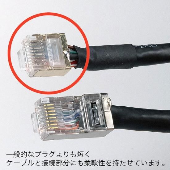 またプラグとケーブルの接点には柔軟性を持たせているので狭い環境での配線がしやすい構造になっています。